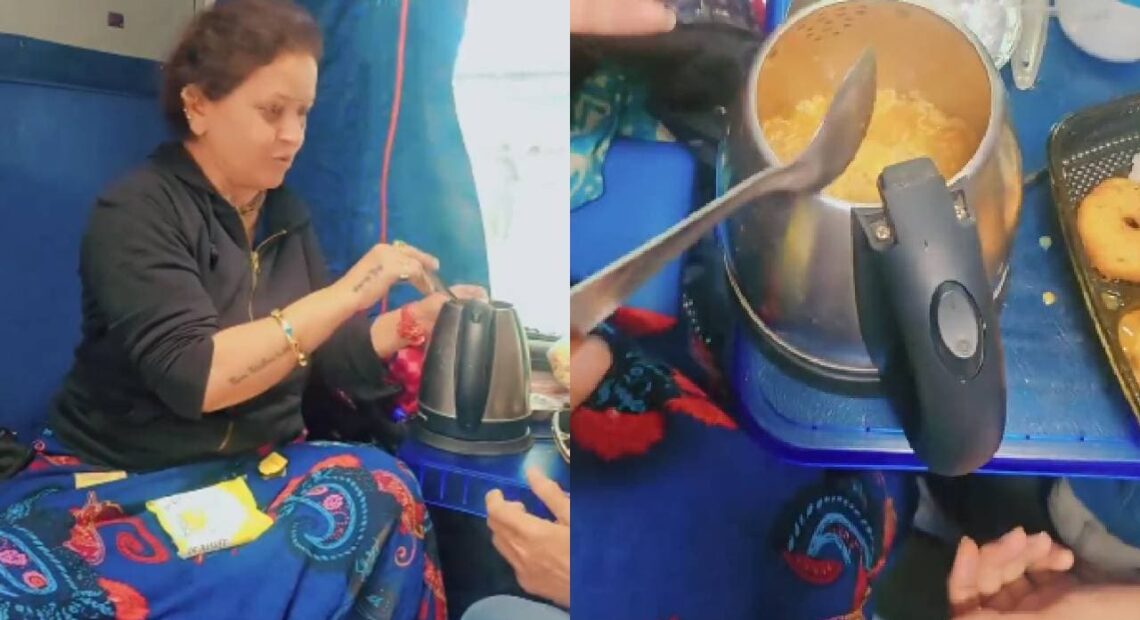 ഇന്ത്യൻ റെയിൽവേയുടെ ട്രെയിനിന്റെ എസി കോച്ചിനുള്ളിൽ മാഗി ഉണ്ടാക്കുന്ന സ്ത്രീയുടെ വീഡിയോ സോഷ്യൽ മീഡിയയിൽ പ്രചരിച്ചതിന് പിന്നാലെ മുന്നറിയിപ്പുമായി റെയിൽവേ അധികൃതർ. കോച്ചിന്റെ പവർ സോക്കറ്റിൽ ഇലക്ട്രിക് കെറ്റിൽ പ്ലഗ് ചെയ്താണ് സ്ത്രീ മാഗി തയ്യാറാക്കുന്നത് എന്ന് വീഡിയോയിൽ കാണാം. ഈ സോക്കറ്റുകൾ മൊബൈൽ