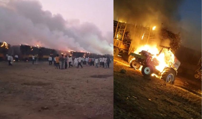 ബെംഗളൂരു: കരിമ്പിന് വിലവർധന ആവശ്യപ്പെട്ട് കർഷക സമരം നടന്ന കർണാടകയിലെ ബാഗൽകോട്ട് ജില്ലയിലെ മുധോളിൽ 96 ട്രാക്ടറുകൾക്ക് തീയിട്ടു. മുധോളിലെ സമീർവാഡിയിലുള്ള പഞ്ചസാര ഫാക്ടറിയുടെ മുൻപിലായിരുന്നു അക്രമം. ഗോദാവരി ബയോ റിഫൈനറി ഷുഗർ ഫാക്ടറിക്ക് സമീപമായിരുന്നു ട്രക്കുകൾ പാർക്കു ചെയ്തിരുന്നത്. അക്രമത്തിന് പിന്നിൽ ആരെന്നതിൽ വ്യക്തതയില്ല. എന്നാൽ ഫാക്ടറിക്കുള്ളിൽ നിന്ന് ഒരു സംഘം അക്രമികൾ
