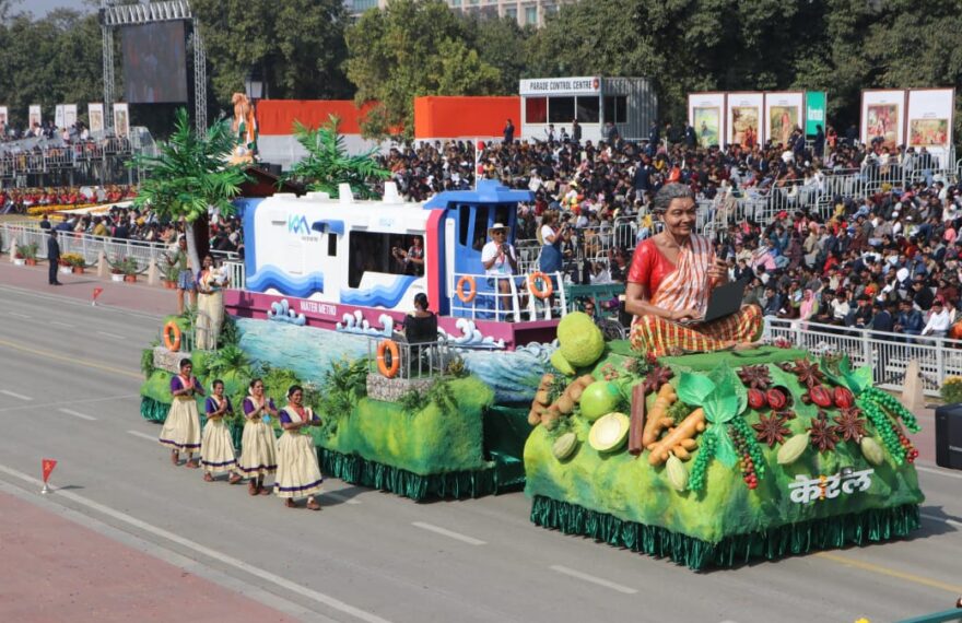 ന്യൂഡൽഹി: റിപ്പബ്ലിക് ദിന പരേഡിന്റെ ഭാഗമായി കേരളം അവതരിപ്പിച്ച നിശ്ചല ദൃശ്യത്തിന് മൂന്നാം സ്ഥാനം. 12 വർഷത്തിന് ശേഷമാണ് കേരളം റിപ്പബ്ലിക് ദിന പരേഡിൽ മെഡൽ പട്ടികയിൽ ഇടം നേടുന്നത്. മുപ്പതിലധികം ടാബ്ലോകളിൽ നിന്നാണ് കേരളത്തിൻ്റെ വികസന നേട്ടമായ കൊച്ചി വാട്ടർ മെട്രോയും ഡിജിറ്റൽ സാക്ഷരതയിലെ നൂറു ശതമാനം നേട്ടവും എടുത്തു കാട്ടിയ ടാബ്ലോ തെരഞ്ഞെടുക്കപ്പെട്ടത്. ഇന്ഫര്മേഷന് ആന്ഡ്