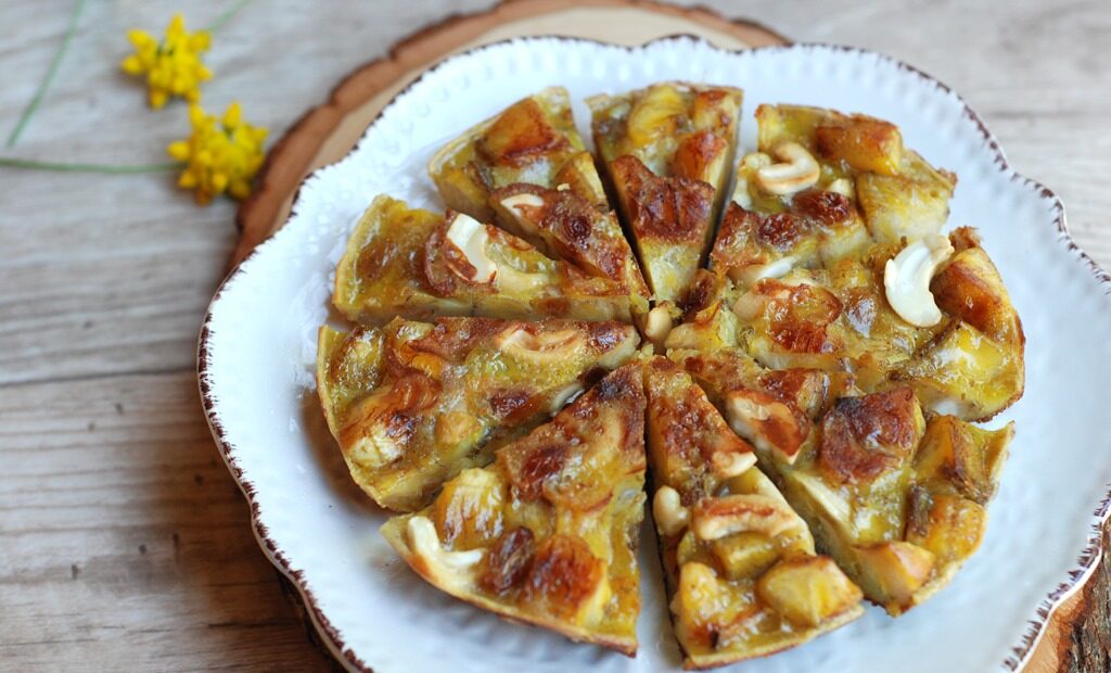വേവിച്ചെടുത്ത പഴത്തിലേക്ക് അരച്ചെടുത്ത മുട്ട ചേർക്കാം. അതിലേക്ക് അണ്ടിപരിപ്പും ഉണക്കമുന്തിരിയും ചേർത്തിളക്കി യോജിപ്പിക്കാം. അടി കട്ടിയുള്ള ഒരു പാൻ അടുപ്പിൽ വച്ച് ചൂടാക്കുക. അതിനു മുകളിലായി മുട്ടയും പഴവും ചേർത്ത മിശ്രിതത്തിൻ്റെ പാത്രം വയ്ക്കുക. അടച്ചു വച്ച് 25 മിനിറ്റോളം കുറഞ്ഞ തീയിൽ വേവിക്കാം. ഇരുവശങ്ങളും വേവിച്ചെടുത്ത കായ്പോള, ചൂടാറിയ ശേഷം മുറിച്ച് വിളമ്പാം.