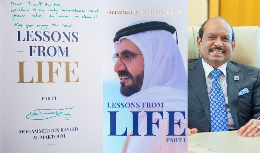 യുഎഇയുടെ ഇപ്പോഴത്തെ വൈസ് പ്രസിഡന്റും പ്രധാനമന്ത്രിയും ദുബായ് ഭരണാധികാരിയുമായ ഷെയ്ഖ് മുഹമ്മദ് ബിൻ റാഷിദ് അൽ മക്തൂം തന്റെ പുസ്തകമായ ‘ജീവിതത്തിൽ നിന്നുള്ള പാഠങ്ങൾ’ എന്ന തന്റെ പുസ്തകമാണ് ലുലു ഗ്രൂപ്പ് ചെയർമാൻ യൂസഫലിക്ക് അയച്ചുകൊടുത്തത്. ഒരു ചെറു കുറിപ്പും തന്റെ കയ്യൊപ്പും ചേർത്തായിരുന്നു അദ്ദേഹം പുസ്തകം അയച്ചത്. “പ്രിയപ്പെട്ട യൂസഫലി, ജ്ഞാനം മാത്രമാണ് നമ്മൾ പങ്കിടുന്തോറും സമ്പന്നമാകുന്ന ഒരേയൊരു പൈതൃകം.”- എന്ന കുറിപ്പായിരുന്നു അദ്ദേഹം യൂസഫലിക്കായി കുറിച്ചത്.