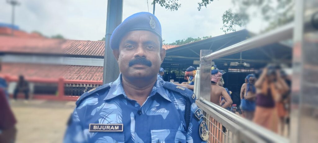 നക്സൽ മേഖലയിലെ സുത്യർഹമായ പ്രവർത്തനത്തിന് ശേഷം മലയാളിയായ ബിജുറാം അയ്യപ്പ സേവയ്ക്കായി ഇതാദ്യമായി സന്നിധാനത്ത്. ശബരിമലയിൽ സുരക്ഷാ ഡ്യൂട്ടിക്ക് എത്തിയ ആർ.എ.എഫിലെ ഡെപ്യൂട്ടി കമാണ്ടൻ്റാണ് മലയാളിയായ കൊല്ലം ആശ്രാമം സ്വദേശി ബിജുറാം.