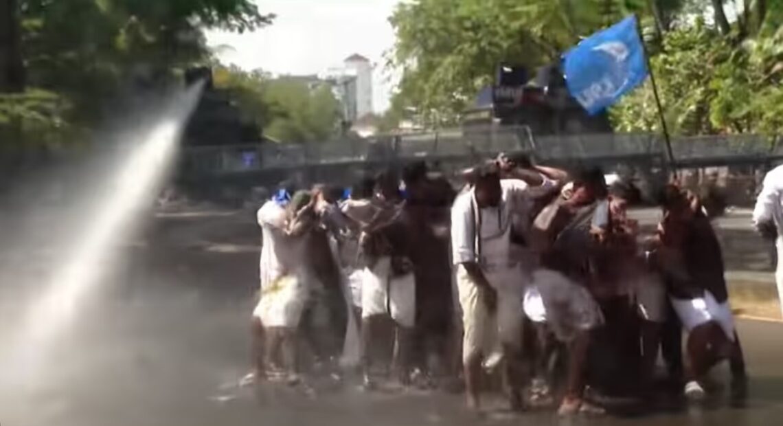 പ്രവർത്തകരെ പിരിച്ചുവിടാനായി പോലീസ് നിരവധി തവണ ജലപീരങ്കി പ്രയോഗിച്ചു. വലിയ പ്രതിഷേധമുണ്ടാകുമെന്ന് കണക്കാക്കി രണ്ട് വാഹനങ്ങളിൽ നിന്നാണ് ജലപീരങ്കി പ്രയോഗം നടത്തി. വനിതാ പ്രവർത്തകർ ഉൾപ്പെടെ പ്രതിഷേധമാർച്ചിന്റെ മുൻനിരയിലുണ്ടായിരുന്നു. കെ എസ് യു സംസ്ഥാന പ്രസിഡൻ്റ് അലോഷ്യസ് സേവ്യറുടെ നേതൃത്വത്തിലായിരുന്നു പ്രതിഷേധ മാർച്ച്. പ്രവർത്തകർക്ക് നേരെ 17 തവണയിലധികം പോലീസ് ജലപീരങ്കി പ്രയോഗം നടത്തി.