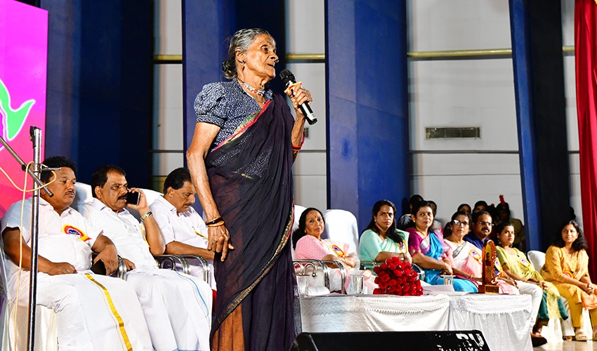 മധ്യപ്രദേശിലെത്തിയശേഷമാണ് ഞാന് യഥാര്ഥ ജീവിത വഴി തിരിച്ചറിഞ്ഞത്. അഞ്ചു രൂപയ്ക്ക് കൂലിപ്പണിയെടുത്താണ് അന്ന് സാമൂഹിക സേവനത്തിനിറങ്ങിയത്. ആദിവാസികള്ക്ക് ജോലിക്കു കൂലിയും കുടിവെള്ളവും ഉറപ്പാക്കുന്നതിന് നിരന്തര പോരാട്ടങ്ങള് വേണ്ടിവന്നു. കാസര്കോഡ് എന്ഡോസള്ഫാന് ബാധിത മേഖലകളിലെ യാത്രകള് ഹൃദയം തകര്ക്കുന്ന വേദനയാണ് നല്കിയത്. മനുഷ്യാവകാശലംഘനത്തിനെതിരായ പ്രവര്ത്തനങ്ങള്ക്കാണ് ആദ്യപരിഗണന നല്കുന്നതെന്നും അവര് വ്യക്തമാക്കി. സ്വയം എഴുത്തിത്തയാറാക്കിയ ഞാന് കാസര്കോഡിന്റെ അമ്മ എന്ന ലഘുനാടകവും അവതരിപ്പിച്ചാണ് ദയാബായി വേദിവിട്ടത്.