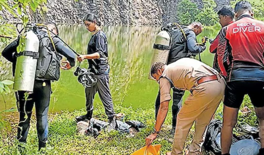മൃതദേഹത്തിന്റെ അരയ്ക്ക് താഴേക്കുള്ള ഭാഗമാണ് ശനിയാഴ്ച കണ്ടെത്തിയത്. ബാക്കി ഭാഗങ്ങൾക്കായി ശനിയാഴ്ച തന്നെ സ്കൂബ സംഘമെത്തി തിരച്ചിൽ നടത്തിയെങ്കിലും കണ്ടെത്താനായില്ല. തുടർന്ന് ഞായറാഴ്ച നടത്തിയ തിരച്ചിലിൽ ചില അസ്ഥികൂടക്കഷ്ണങ്ങൾ കൂടി ലഭിച്ചു. മൃതദേഹത്തിന്റെ കാൽ ഭാഗം കയറ് കൊണ്ട് കെട്ടിയ നിലയിലാണ്. റോവർ അണ്ടർ വാട്ടർ ക്യാമറ ഉപയോഗിച്ചാണ് തിരച്ചിൽ നടത്തിയത്.