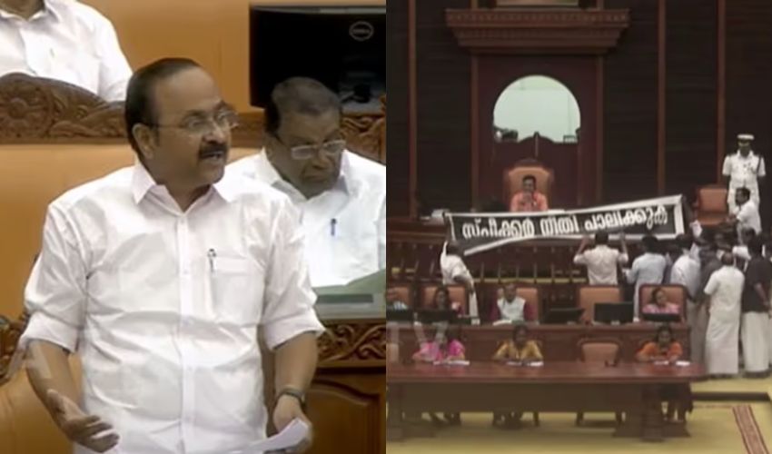 സ്പീക്കറുടെ പ്രതികരണത്തിൽ പ്രതിപക്ഷ നേതാവ് വി ഡി സതീശൻ കനത്ത പ്രതിഷേധം അറിയിച്ചിട്ടും ഫ്ലോറിൽ ഉന്നയിക്കാൻ മാത്രം പ്രാധാന്യമില്ലെന്ന് സ്പീക്കർ ആവർത്തിച്ചു പറയുകയായിരുന്നു. ടിവി ചർച്ചയിൽ ആരെങ്കിലും എന്തെങ്കിലും പറഞ്ഞാൽ അത് എങ്ങനെ ചർച്ച ചെയ്യുമെന്നും അദ്ദേഹം ചോദിച്ചു. തുടർന്ന് സഭയിലും പുറത്തും സ്പീക്കർ നീതി പാലിക്കുക എന്ന ബാനറുമായി പ്രതിപക്ഷ നേതാക്കൾ പ്രതിഷേധം ആരംഭിച്ചു.
