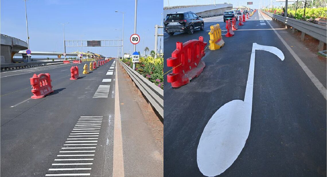 മുംബൈ: രാജ്യത്തെ ആദ്യ മ്യൂസിക്കൽ റോഡ് മുംബൈയിൽ. മുംബൈയിലെ തീരദേശ റോഡിലൂടെ വാഹനമോടിക്കുമ്പോൾ ഇനി സംഗീതം കേൾക്കാം. മുംബൈയിലെ ഛത്രപതി സംഭാജി മഹാരാജ് കോസ്റ്റൽ റോഡിലാണ് പാട്ടു കേൾക്കുന്ന സംവിധാനമുള്ളത് . കോസ്റ്റൽ റോഡ് ടണലിൽ നിന്ന് പുറത്തുകടക്കുമ്പോൾ, നരിമാൻ പോയിന്റ്-വർളി റോഡിൽ 500 മീറ്റർ നീളമുള്ള ഒരു “മ്യൂസിക് റോഡ്” യാത്രക്കാർക്ക് കാണാൻ കഴിയും.