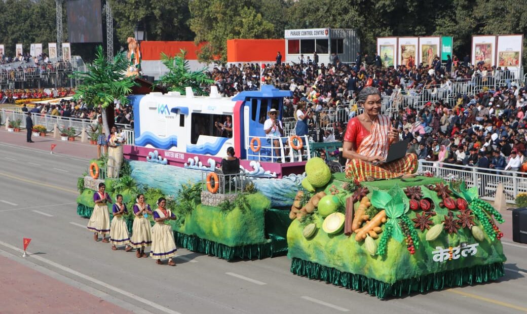ന്യൂഡൽഹി: റിപ്പബ്ലിക് ദിന പരേഡിന്റെ ഭാഗമായി കേരളം അവതരിപ്പിച്ച നിശ്ചല ദൃശ്യത്തിന് മൂന്നാം സ്ഥാനം. 12 വർഷത്തിന് ശേഷമാണ് കേരളം റിപ്പബ്ലിക് ദിന പരേഡിൽ മെഡൽ പട്ടികയിൽ ഇടം നേടുന്നത്. മുപ്പതിലധികം ടാബ്ലോകളിൽ നിന്നാണ് കേരളത്തിൻ്റെ വികസന നേട്ടമായ കൊച്ചി വാട്ടർ മെട്രോയും ഡിജിറ്റൽ സാക്ഷരതയിലെ നൂറു ശതമാനം നേട്ടവും എടുത്തു കാട്ടിയ ടാബ്ലോ തെരഞ്ഞെടുക്കപ്പെട്ടത്.