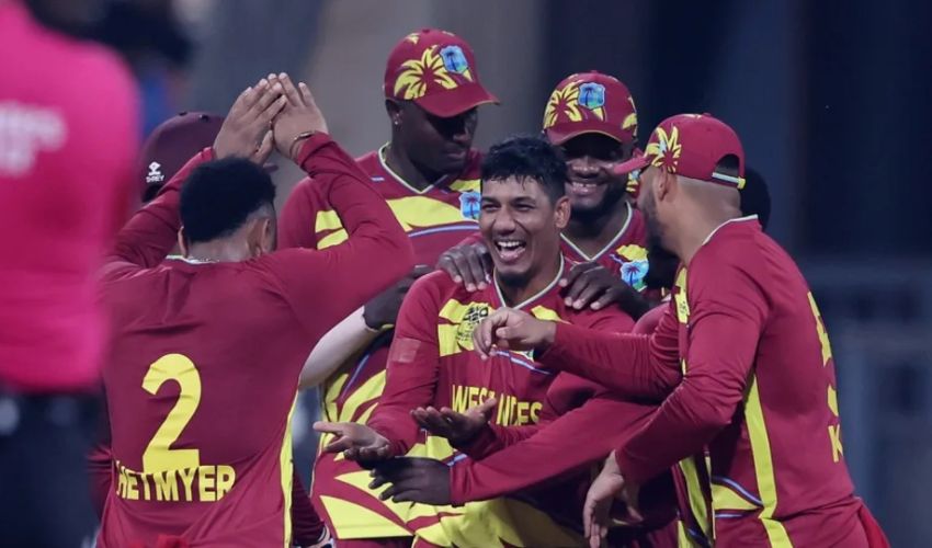 വെസ്റ്റ് ഇന്ഡീസിന്റെ തുടക്കം അത്ര മികച്ചതായിരുന്നില്ല. ഓപ്പണര്മാരായ ബ്രണ്ടന് കിങ് (ഒന്ന്), ഷായ് ഹോപ്പ് (പൂജ്യം) എന്നിവര് അതിവേഗം കൂടാരം കയറി. ഷിമ്രോണ് ഹെറ്റ്മയര് (12 പന്തില് 23), റോസ്റ്റണ് ചേസ് (29 പന്തില് 34) എന്നിവര് പിടിച്ചുനിന്നതോടെ കരീബിയന് സ്കോര് ബോര്ഡ് ചലിച്ചുതുടങ്ങി. അഞ്ചാമനായി ക്രീസിലെത്തിയ ഷെര്ഫെയ്ന് റതര്ഫോര്ഡ് അര്ധ സെഞ്ചുറി നേടി. 42 പന്തില് രണ്ട് ഫോറും ഏഴ് സിക്സും സഹിതം 76 റണ്സുമായി പുറത്താകാതെ നിന്ന റതര്ഫോര്ഡ് ആണ് കളിയിലെ താരം. ജേസണ് ഹോള്ഡര് 17 പന്തില് 33 റണ്സ് നേടി.